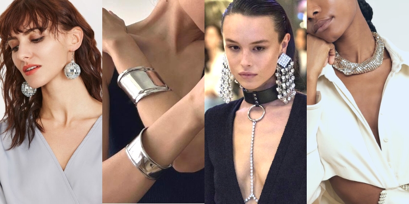 Bên cạnh The Eras Tour thì hè năm nay còn có một sự kiện âm nhạc nổi bật khác là Renaissance Tour của Beyoncé. Với chất liệu âm nhạc chủ yếu là từ sàn disco của những năm 70, “Nàng Ong Chúa” đem đến nguồn cảm hứng thời trang đầy cá tính, mang đậm vẻ lấp lánh của các chất liệu kim loại. Nếu bạn yêu thích sự nổi bật nhưng lại không muốn vẻ ngoài của mình quá màu mè, thì những món trang sức bằng bạc hoặc mạ bạc mang tinh thần của thập niên 70 sẽ là sự lựa chọn hoàn hảo. Bạn có thể thử sức với những đôi hoa tai lấp lánh mang dáng dấp của quả cầu disco, vòng tay kim loại ánh bạc to bản, vòng cổ đính đá trắng có chi tiết nổi bật,…
