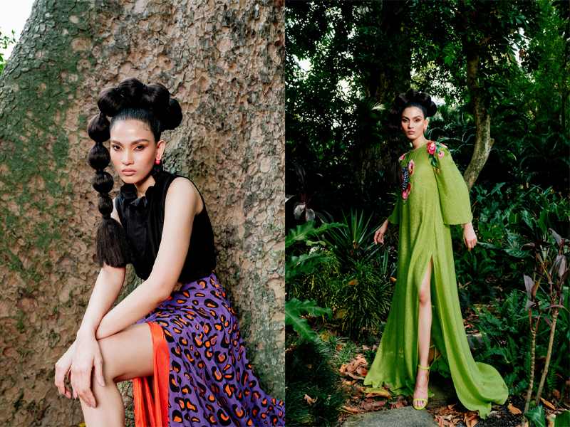 BST “Welcome to the Jungle” của nhà thiết kế Hà Linh Thư được xem như một câu chuyện đầy hứng khởi của những hành trình khám phá. Chủ đề của BST được lấy cảm hứng từ cánh rừng già hoang dã, với những con báo đen hay những con linh miêu uyển chuyển quyến rũ, nguy hiểm nhưng cũng đầy tự do và phóng khoáng.