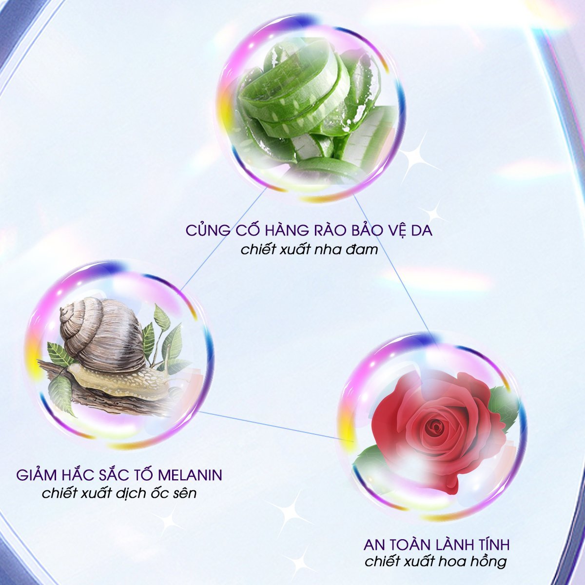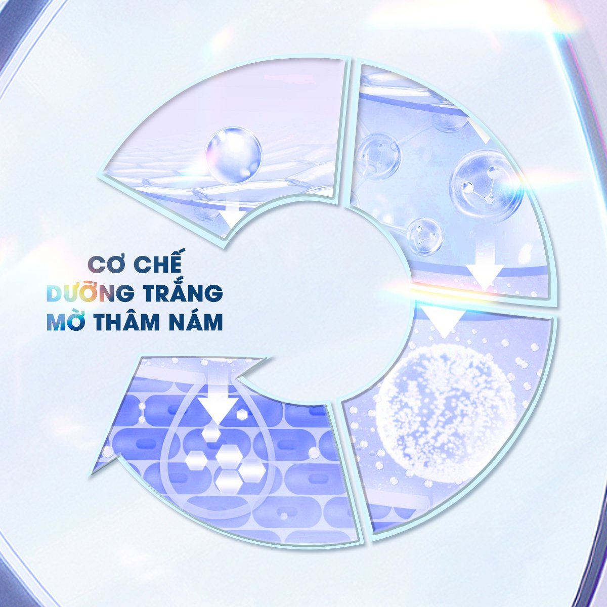 Collagen thủy phân không chỉ giúp da trở nên săn chắc, mịn màng mà còn đảm bảo đều màu da bằng cách ức chế hình thành Melanin – nguyên nhân chính gây sạm thâm và nám. Kojic Acid, một thành phần quan trọng, sẽ giúp bạn nhanh chóng có được làn da trắng sáng và đều màu hơn.