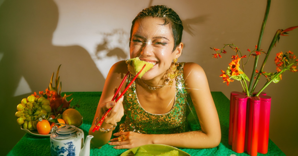 Bộ ảnh mới của fashionista Khánh Linh: Sự kết hợp hoàn hảo giữa bánh chưng và… hàng hiệu