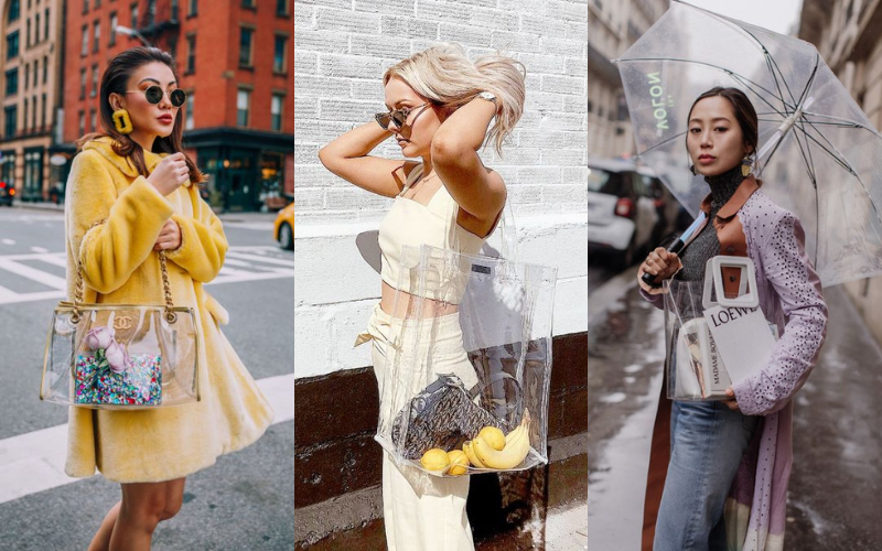 Ngay từ đầu Hè, túi xách làm từ chất liệu nhựa PVC không thấm nước đã trở thành món đồ được “săn lùng” ráo riết để các tín đồ thời trang chuẩn bị cho chuyến đi biển của mình. Và khi những cơn mưa “không hẹn mà gặp”, chiếc túi này thực sự là vị “cứu tinh” đầy phong cách. Túi PVC trong suốt là thiết kế phổ biến nhất nhờ khả năng phối đồ linh hoạt và sự trẻ trung, hiện đại của nó. Ngoài ra, nhiều thương hiệu cao cấp như Chanel, Louis Vuitton,… đã cho ra mắt những mẫu túi PVC với màu sắc vô cùng đa dạng, đặc biệt là sắc cầu vồng hay pastel pha kim tuyến cực kỳ bắt mắt.