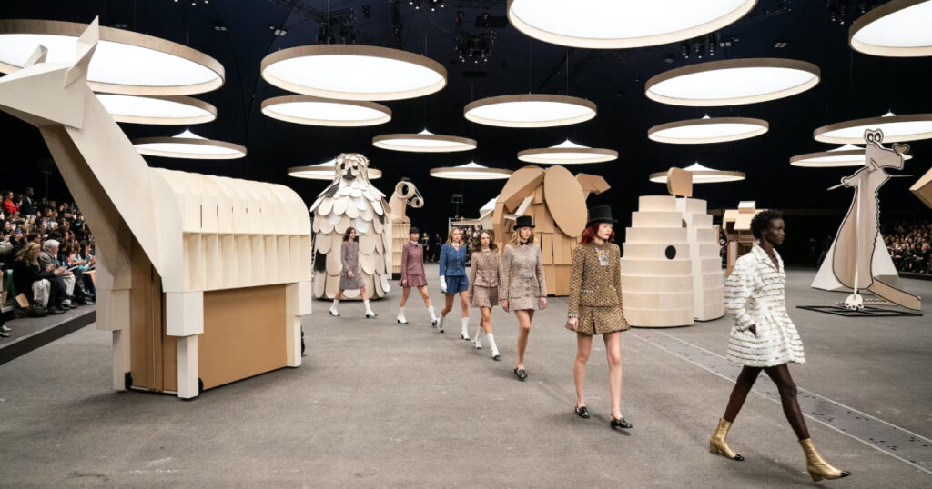 Đồng hành cùng nghệ sĩ Xavier Veilhan tạo nên không gian trình diễn đầy hoài niệm này, vị Giám đốc Nghệ thuật đương nhiệm của CHANEL lấy cảm hứng từ không gian sống tối giản và sang trọng của nhà sáng lập, đặc biệt là những bức tượng điêu khắc động vật theo chủ nghĩa chiết trung được đặt ngăn nắp ở các căn phòng. “Với lần hợp tác thứ ba này, tôi cùng Xavier giải mã câu chuyện về những linh thú đặt trong căn hộ của Gabrielle Chanel theo thế giới quan của mình. Vũ trụ thủ công của BST lần này hướng đến thế giới động vật“, Virginie Viard tâm sự.