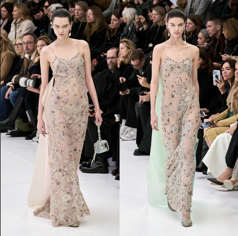 Đây là sự tiếp nối BST Haute Couture Thu Đông của Fendi, đồng thời là lời hồi đáp cho những khách hàng yêu thích trang phục dạ hội của hãng. Bồng bềnh, thanh lịch và tươi trẻ là những từ hoàn hảo nhất để miêu tả BST năm nay. Kim Jones đã không chỉ tái định nghĩa, mà còn hiện đại hóa chiếc đầm nữ thần với kiểu dáng mỏng manh, màu sắc nhạt, và cảm hứng từ chiếc đầm suông của những năm 90.