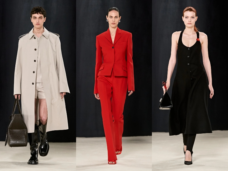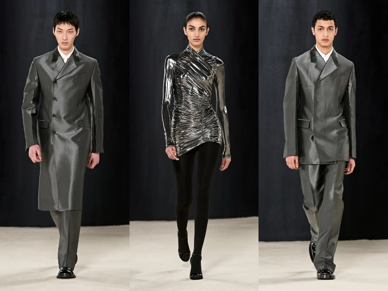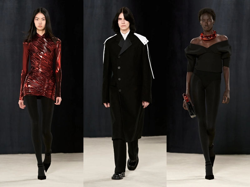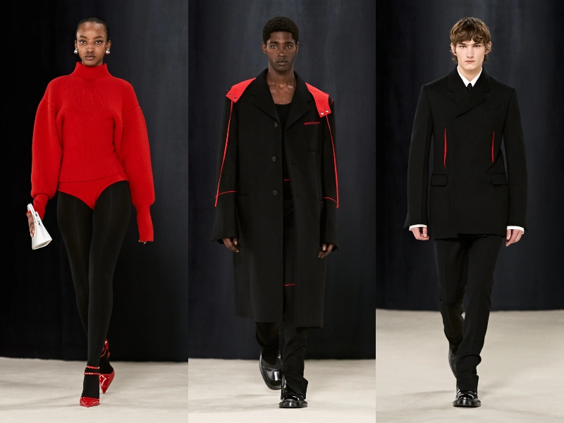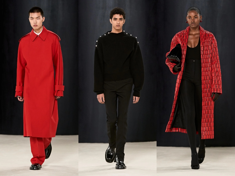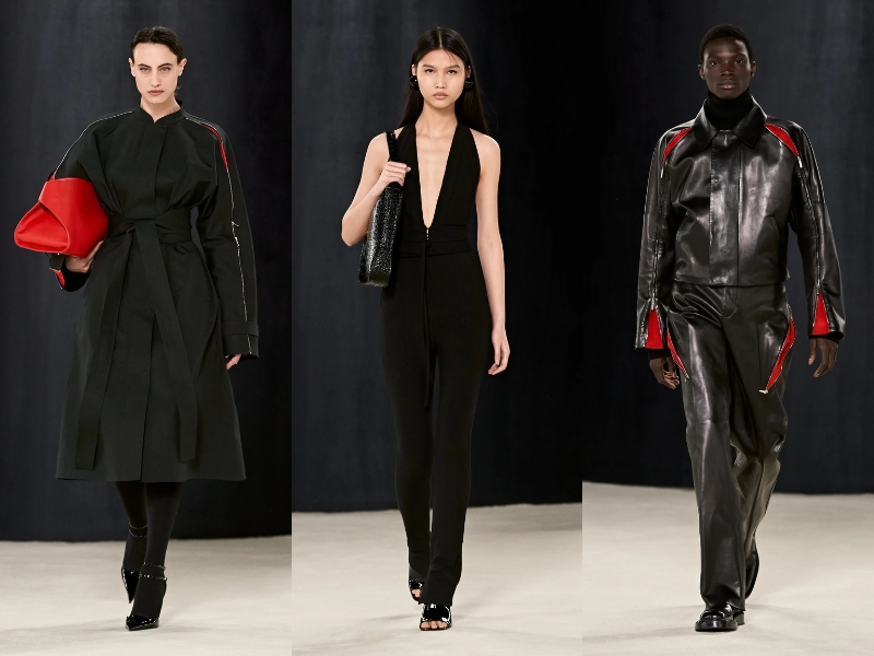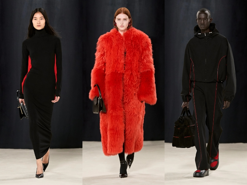 BST Ferragamo Thu Đông 2023 đã chứng minh rằng Maximilian Davis là một nhà thiết kế bậc thầy, thông qua những kiểu dáng thanh lịch, cổ điển mà vẫn không kém phần thời thượng. Mở đầu BST là một chiếc áo khoác len vừa vặn với phần cổ quấn cao, quần da bó sát và găng tay da. Thông qua show diễn, giới mộ điệu dễ dàng bắt gặp các kiểu áo khoác có mũ trùm đầu có thể tháo rời, phần nút và vạt áo bất đối xứng. Trong khi đó, áo khoác nam giới có phom dáng cứng cáp, được thiết kế với những đường rách tinh tế để lộ lớp thứ hai màu đỏ chói. Tiếp theo, NTK đã đưa vào BST phong cách thể thao cổ điển với những bộ đồ sang trọng có cấu trúc len dày và chất liệu nylon thoáng khí. Áo khoác có khóa kéo được tạo kiểu với cổ áo cao nghiêm nghị, chi tiết lông thú được biến tấu đa dạng từ kiểu dáng này sang kiểu dáng khác với vẻ lộng lẫy đầy mê hoặc.