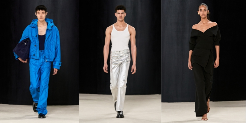 (Từ trái sang) Aaron Piper, Alice Pagani và Kelela trong các thiết kế thuộc BST Ferragamo Thu Đông 2023