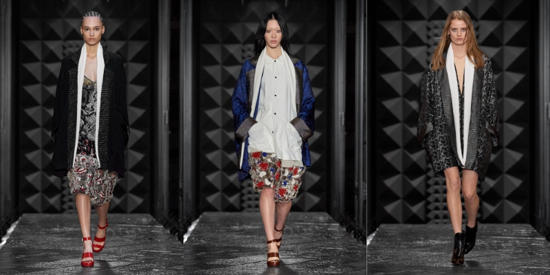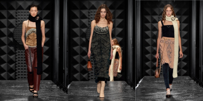 BST mang vẻ đẹp đầy mê hoặc và sức hút bí ẩn của phong cách thời trang Pháp. Các thiết kế mang sự giao thoa giữa kiểu dáng tinh tế, thanh lịch với nét biến tấu táo bạo. Trên sàn diễn, người mẫu lần lượt bước ra với chiếc blazer được xếp nếp thanh lịch cùng thắt lưng tôn lên vòng eo duyên dáng của người phụ nữ. Bên cạnh đó, áo khoác da được xử lý mô phỏng len với với các phương pháp in và dập nổi bắt mắt. Những bộ suit caro được gắn với những chiếc khăn quàng cổ mềm mại, và chất liệu len dày dặn được ứng dụng trong cả chiếc đầm góc cạnh và áo len đan. Trong BST, những điều tinh túy nhất được thể hiện qua từng chi tiết nhỏ – như quần jeans da đính sequin được vẽ sọc, hay những chiếc đầm 3D được đính kết những sợi kim loại mảnh, tạo cảm giác giống như tơ nhện.