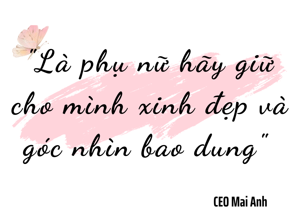 Theo CEO Mai Anh: “nếu bạn sinh ra nghèo không phải lỗi của bạn, nhưng nếu bạn chết nghèo thì đó là lỗi của bạn. Mỗi chúng ta đều có quyền thay đổi. thay đổi vận mệnh của chính mình và điều quan trọng là chúng ta phải hành động để thay đổi vận mệnh của mình”.