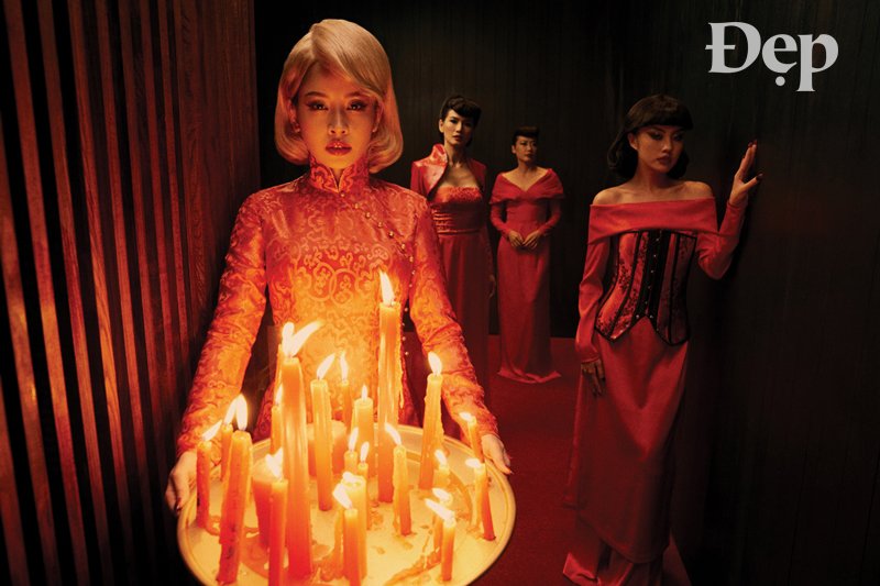 Trang phục: Nguyễn Phúc Tuấn – Trang sức: Jessica Jewelry VietnamLông vũ mềm mại hay kim loại lấp lánh đều tạo được hiệu ứng thị giác hút mắt cho những thiết kế dạ hội. Trang phục: Nguyễn Tiến TruyểnTrang phục: Đỗ LongĐỏ là màu của kiêu hãnh, cũng là màu của những bí mật thôi thúc người ta tìm kiếm câu trả lời. Trang phục: Hoàng TonyKhông gian của Roka Fella Saigon là bối cảnh làm nên những bức hình thời trang mang đậm tính điện ảnh. Trang phục: Hoàng Tony – Trang sức: Jessica Jewelry VietnamTrang phục: Nguyễn Tiến TruyểnSự trở lại của hai diễn viên gạo cội Hồng Ánh, Anh Thư bên cạnh những gương mặt trẻ tiềm năng của điện ảnh Việt Nam. Trang phục: Nguyễn Tiến Truyển (Chi Pu) – Lê Thanh Hòa (Rima) – Đỗ Long (Anh Thư) – Nguyễn Phúc Tuấn (Hồng Ánh)