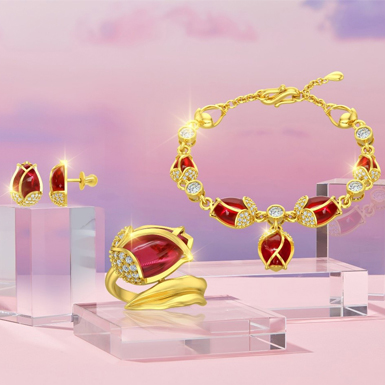 Một lựa chọn quà tặng khác được ưa chuộng dịp này chính là Trang sức Vàng 24K – chất liệu quý với vẻ đẹp và vị thế trường tồn cùng thời gian. Nhân dịp 8/3, DOJI ra mắt Bộ sưu tập Trang sức Vàng 24K mang tên “Nữ Hoàng Mùa Xuân”, được tạo hình theo loài hoa Tulip xinh đẹp hoàn mỹ, gửi gắm thông điệp đẹp đẽ rằng “Phụ nữ hãy sống rực rỡ như những đoá hoa”. Bên cạnh đó, các Bộ sưu tập “The Camelia” lấy cảm hứng từ hoa trà huyền thoại hay “Nàng Thơ Vàng” mang hình ảnh hoa bạch tuyết mai trang nhã đều là món quà ý nghĩa giúp bạn thay lời cảm ơn chân thành nhất tới một nửa thế giới.