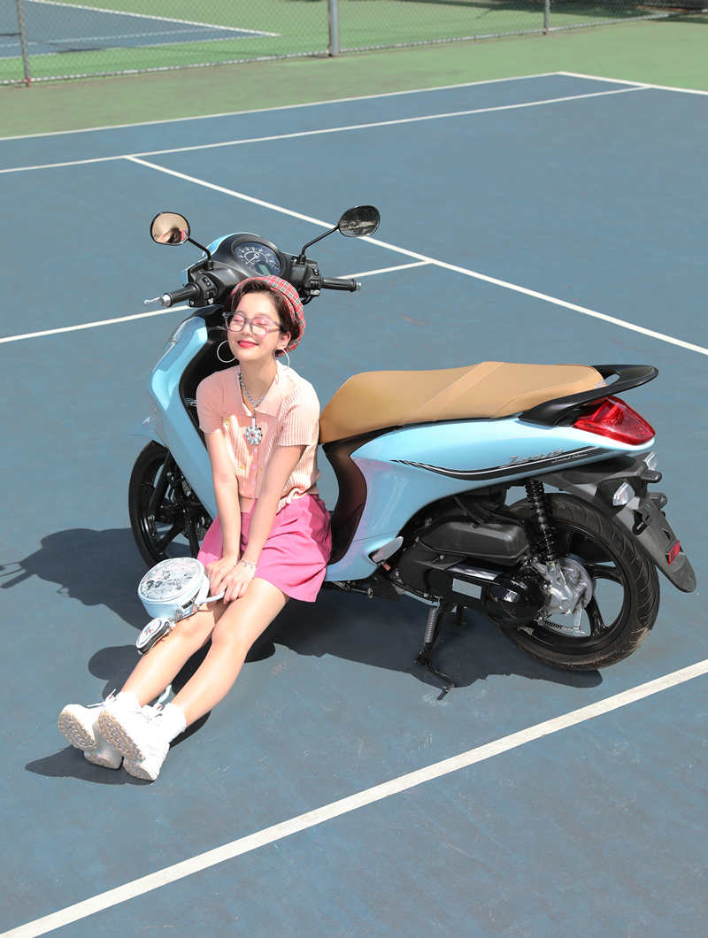 Mới đây, cô nàng đã cập nhật cuộc sống đời thường của mình thông qua bộ ảnh dạo phố hết sức đáng yêu cùng “người bạn đồng hành” Yamaha Janus. Nét trẻ trung, tinh nghịch của cô nàng, kết hợp với Janus màu xanh ngọc “trendy” càng khiến cho cô nàng thêm nổi bật và thu hút.