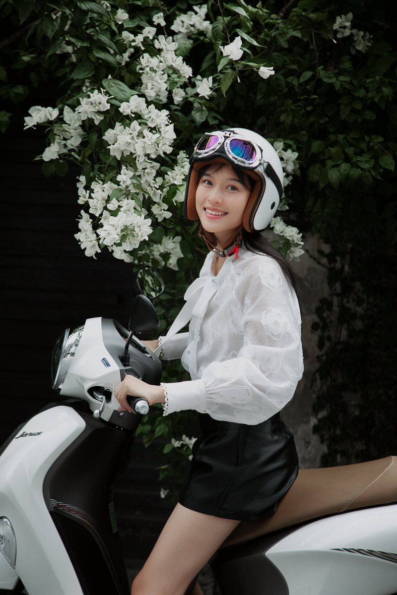 Mới đây, Hoàng Hà đã tung bộ ảnh mới, khoe trọn nét tinh khôi và trong trẻo. Cô nàng diện một bộ cánh vừa hiện đại, vừa mang hơi thở truyền thống, rất phù hợp với vẻ ngoài nhẹ nhàng của cô nàng. Bên cạnh đó, Hoàng Hà không quên “khoe” chiếc xe mà cô yêu thích dạo gần đây – Yamaha Janus, chiếc xe đã đồng hành cùng cô nàng trong mỗi lần đi quay chụp trong thành phố.