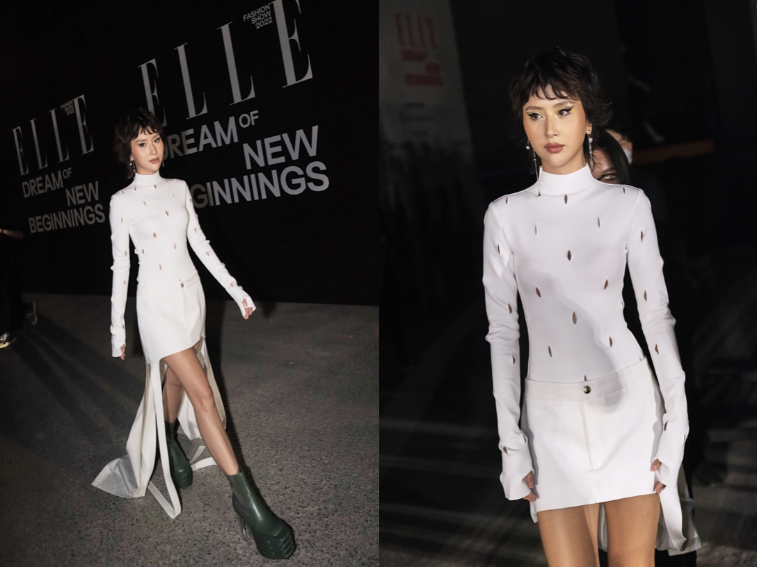 Diễn viên Jun Vũ trong thiết kế áo bodysuit cut – out đa chi tiết, kết hợp form quần ống rộng cùng điểm nhấn dây nối cạp tinh tế.Diễm My trong thiết kế của NTK/Giám đốc Sáng tạo Cường Đàm với điểm nhấn là những đường chần chỉ kéo dài, kết hợp cùng chân váy suông tối giản.Quỳnh Anh Shyn dự show diễn trong thiết kế áo thun cut-out và mini skirt vạt dài của BST FIGURE.Helly Tống thanh lịch trong thiết kế đầm cổ vuông với phom dáng tối giản, gấu váy được thiết kế dập phồng nhẹ tạo sự mềm mại.MC Liêu Hà Trinh diện thiết kế áo off-shoulder bất đối xứng cùng chi tiết cut – out trên vai, kết hợp cùng quần có vạt mang hơi hướng tối giản.Linh Chi xuất hiện với hình tượng quyền lực khi diện thiết kế có vạt áo choàng to rộng, phối cùng quần ống đứng với chi tiết dây nối cạp lạ mắt.Hồ Thu Anh trong thiết kế áo trench coat đứng form phối cùng bralette tạo những khoảng kín hở có tính toán.Đồng Ánh Quỳnh mang tinh thần mạnh mẽ cùng thiết kế áo blazer da và quần ống rộng với chi tiết xẻ gấu được cắt thủ công.Á hậu Thảo Nhi Lê trong thiết kế của NTK/Giám đốc Sáng tạo Cường Đàm. Người đẹp từng xuất hiện trên Vouge Singapre trong dự án kết hợp cùng NTK 9X.Nhã Phương sang trọng cùng thiết kế của CHATS by C.Dam với điểm nhấn đường cắt giọt nước tại ngực và khuy cài kim loại đặc trưng của thương hiệu.Diệu Linh diện đầm off-shoulder xếp nếp mềm mại mang hơi hướng tối giản.Diễn viên Quỳnh Lương và người mẫu Diệu Linh trong các thiết kế của CHATS by C.Dam.