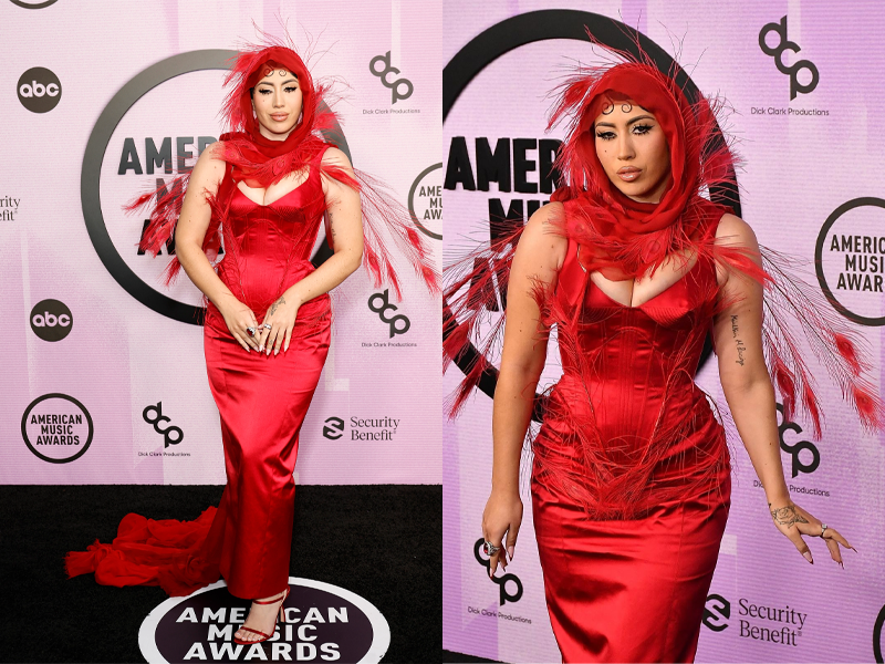 Tiếp tục kỉ nguyên “Midnights” với những bộ đồ lấp lánh, Taylor Swift chiếm trọn mọi ánh nhìn trong thiết kế jumpsuit vàng đính đá quý của The Blonds, giúp người đẹp khoe trọn tấm lưng “ngọc ngà”.Gia đình nữ ca sĩ Pink xuất hiện cực thần thái trên thảm đỏ. Bên cạnh chồng và các con diện tone-sur-tone với trang phục màu đen, người đẹp nổi bật hẳn lên với chiếc đầm tua rua lấp lánh màu đen – vàng do Bob Mackie thiết kế.Ca sĩ kiêm diễn viên Ellie Goulding tỏa sáng trong thiết kế đầm bạc đính kim tuyến với chi tiết cut out độc đáo của Philosophy di Lorenzo Serafini.Nữ ca sĩ Kelly Rowland trong chiếc đầm họa tiết da báo của Nicolas Jebran và đôi giày cao gót đính đá đến từ thương hiệu Valentino.Nam ca sĩ Machine Gun Kelly gây ấn tượng với diện mạo cực kỳ “gai góc” đến từ Dolce & Gabbana – một bộ suit màu tím được bao phủ bởi những chiếc gai bạc được làm từ loại đồng chuyên để đúc súng.Nữ diễn viên Liza Koshy tham dự buổi lễ trong thiết kế đầm da đen – trắng, với điểm nhấn là họa tiết uốn lượn như những đường điêu khắc kì công.Chủ nhân bản hit “All About That Bass”, nữ ca sĩ Meghan Trainor dễ dàng thu hút mọi ánh nhìn với bộ suit hồng ánh nhũ cực trendy.Xuất hiện trong chiếc đầm ôm đen – trắng với những đường cut out lượn sóng ma mị, nữ ca sĩ Latin – Anitta khoe trọn thân hình gợi cảm của mình. Đây là trang phục được nhà mốt Mugler thiết kế dành riêng cho Anitta.Nữ nghệ sĩ trẻ Sabrina Carpenter gợi cảm đúng chất “quý cô tiệc tùng” với thiết kế đầm hai mảnh tua rua đính đá đến từ nhà mốt Oscar de la Renta.Giọng ca “Unholy” Kim Petra gợi nhớ đến hình ảnh của Britney Spears khi diện đầm denim đuôi cá, với phần áo cúp ngực hết mực nóng bỏng.Cực kỳ táo bạo và quyến rũ, đó chính là nữ Rapper Latto trong trang phục nội y màu đen, với áo nịt ngực phong cách Gothic và lớp mạng xuyên thấu đầy bí ẩn.Nữ nghệ sĩ đồng quê Carrie Underwood khoe trọn vẻ quyến rũ ở tuổi 39 trong thiết kế đầm dạ hội xẻ tà với chi tiết đính tua rua hạt đá màu cực kỳ bắt mắt.“Tân binh của năm” Dove Cameron tỏa sáng trong thiết kế monochrome đen – trắng đến từ BST Thu Đông của Marc Jacobs.Người mẫu Joan Smalls lựa chọn trang phục đầm cao cổ ánh kim, xẻ vạt trước giúp khoe khéo vẻ ngoài mảnh mai sang trọng.Nữ ca sĩ Kali Uchis xuất hiện vô cùng nổi bật trong thiết kế đầm ôm màu đỏ của Dilara Findikoglu, đính kèm khăn choàng đầu được làm từ lông vũ cùng màu.Coco Jones đem đến AMAs vẻ đẹp hiện đại có phần “trừu tượng” với chiếc đầm đen xẻ eo, phom dáng bất đối xứng và in họa tiết các đường lượn sóng lồng vào nhau.Nữ ca sĩ Dencia vô cùng ấn tượng trong bộ trang phục xuyên thấu, nổi bật với những chi tiết uốn lượn ánh bạc cực kỳ mạnh mẽ. Cô hoàn thiện vẻ ngoài của mình bằng chiếc mũ điêu khắc và cây gậy phủ bạc tone-sur-tone.