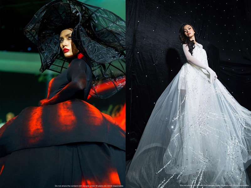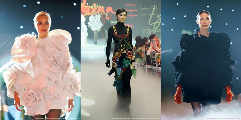 Tuy nhiên, điểm nhấn đặc sắc nhất phải kể đến chính là palette màu pha trộn giữa đen, trắng và neon, cùng các chi tiết hoa 3D lớn. Đầu tiên là hoa hồng cam kết hợp chấm bi trên nền đen mang đậm ánh nhìn nghệ thuật mới “Dark Beauty”, tiếp đến là những đóa cúc trắng nở rộ giữa không gian không trọng lực. Được biết, Lý Quí Khánh đã mất hơn 3 tháng cho toàn bộ các công đoạn để tạo nên bộ sưu tập đặc biệt này. Các thiết kế đều được làm thủ công, sử dụng nhiều kỹ thuật của thời trang may đo cao cấp.