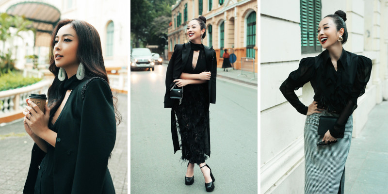 Trong 35 looks của bộ sưu tập Paris Mon Amour, Jennifer Phạm ưu tiên chọn các items đen trắng để mix-match thành 4 set đồ white-on-white, black-on-black. Đây cũng là hai gam màu kinh điển, quyền lực, trường tồn cùng thời gian.