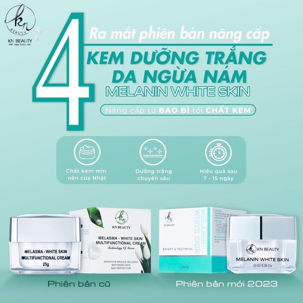 Một làn da tươi trẻ, mịn màng và rạng ngời luôn là ước mơ của hàng triệu phụ nữ trên khắp thế giới. Tuy nhiên, với những vấn đề về nám, sạm, tàn nhang và lão hoá da, chúng ta thường gặp khó khăn trong việc duy trì làn da hoàn hảo. Hãy để KN Beauty đồng hành cùng bạn trên hành trình làm đẹp và tự tin với sự ra mắt phiên bản nâng cấp của KEM NÁM MELANIN WHITE SKIN – một giải pháp hoàn hảo cho làn da của bạn.