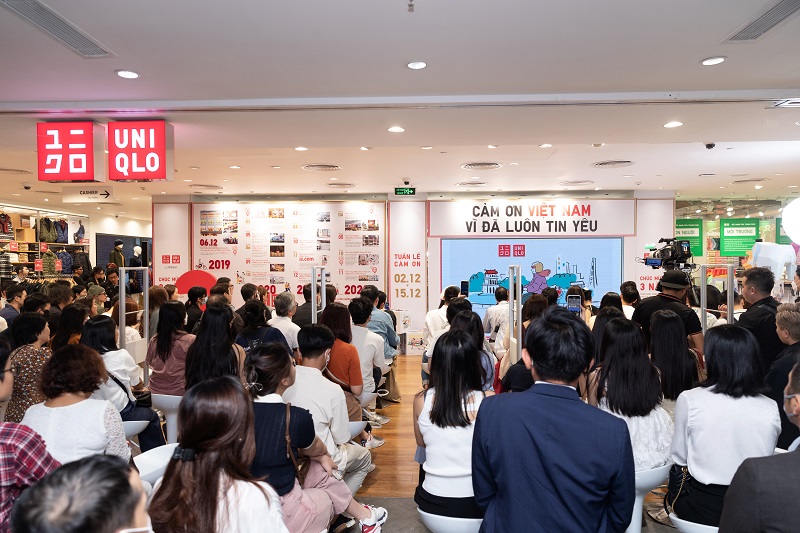 Ngày 02 tháng 12, UNIQLO tổ chức sự kiện kỷ niệm 3 năm tại Việt Nam nhằm tri ân khách hàng, đối tác đã đồng hành cùng thương hiệu trong hành trình 3 năm vừa qua. Thông qua sự kiện, UNIQLO cũng chính thức khởi động chương trình “Tuần lễ cảm ơn” (Kanshasai) diễn ra từ ngày 02 đến ngày 15 tháng 12 với hàng loạt những trải nghiệm đặc biệt dành cho khách hàng.
