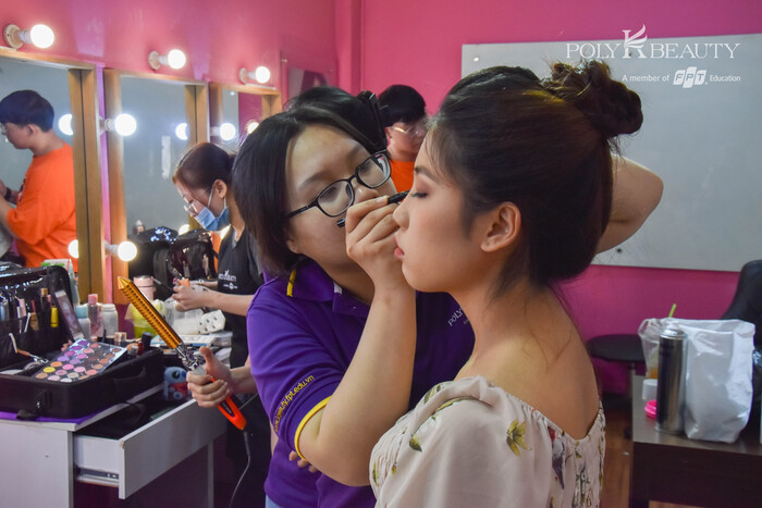 | Poly K-Beauty là đơn vị uy tín trong đào tạo ngành Trang điểm nghệ thuật. Chương trình chú trọng thời lượng thực hành rèn luyện tay nghề tại lớp. Học viên được thực tập rèn luyện thành thạo, nâng cao tay nghề ngoài giờ miễn phí. Toàn bộ nội dung chương trình Quốc Tế được Việt hóa toàn diện về kiến thức hoàn chỉnh. Chương trình được thiết kế khoa học với 90% là thực hành. Ngoài ra tại Poly K-Beauty học viên được bố trí thực tập và làm việc sau khi tốt nghiệp. Cơ hội thi lấy chứng chỉ Quốc tế được công nhận ở nhiều Quốc gia và làm việc tại nước ngoài. |