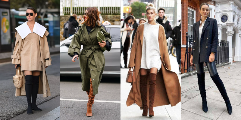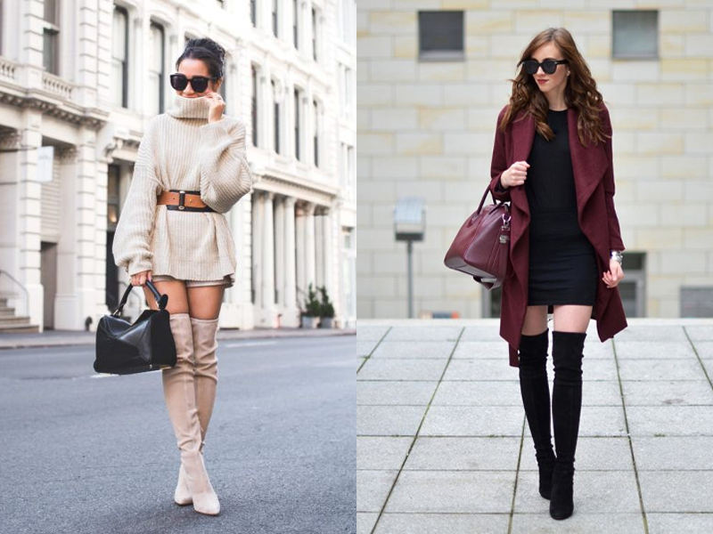 Tỷ lệ luôn là yếu tố quan trọng chi phối độ hài hòa của một bộ trang phục. Đặc biệt là vào mùa Thu Đông, mọi người sẽ có xu hướng phối lớp để giữ ấm. Với những đôi bốt đùi, bạn nên ưu tiên kết hợp với các thiết kế có độ dài vừa phải như chân váy ngắn, đầm ngắn trên đầu gối,… để cân bằng tỉ lệ dài – ngắn. Hai món đồ mà độ dài vượt quá đầu gối khi bạn diện bốt đùi đó là áo khoác ngoài và quần skinny. Bên cạnh đó, bốt đùi cũng có nhiều phom dáng: bốt ôm sát chân nên được phối cùng trang phục rộng rãi, bốt phom rộng thì nên phối với quần áo có độ ôm vừa phải.