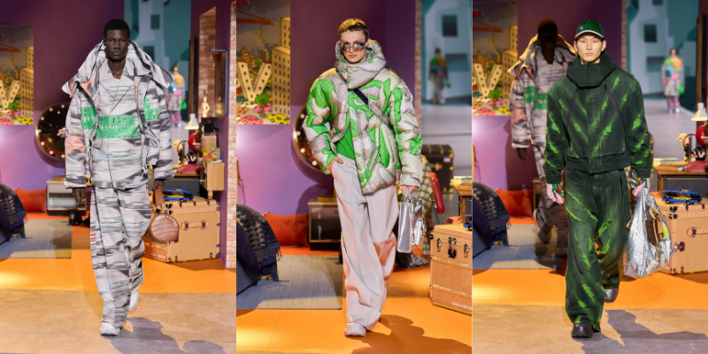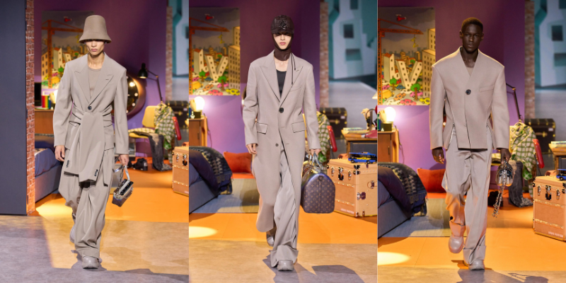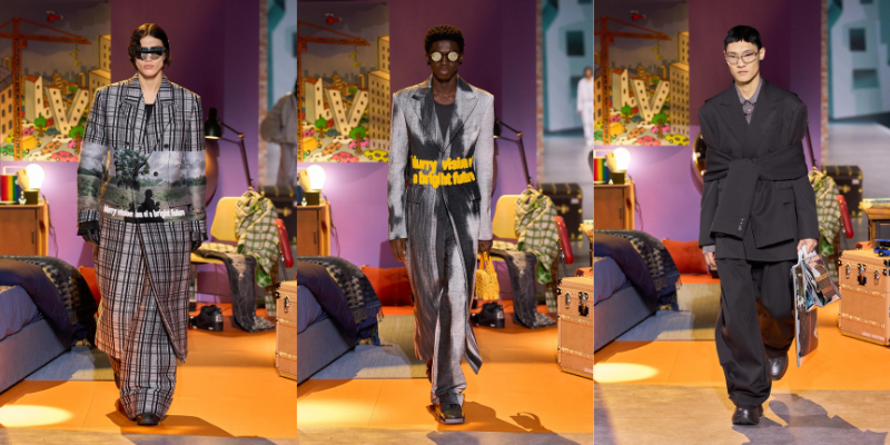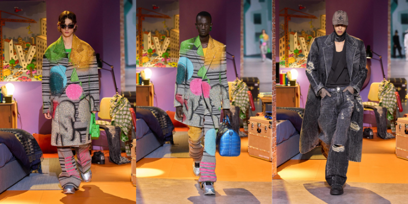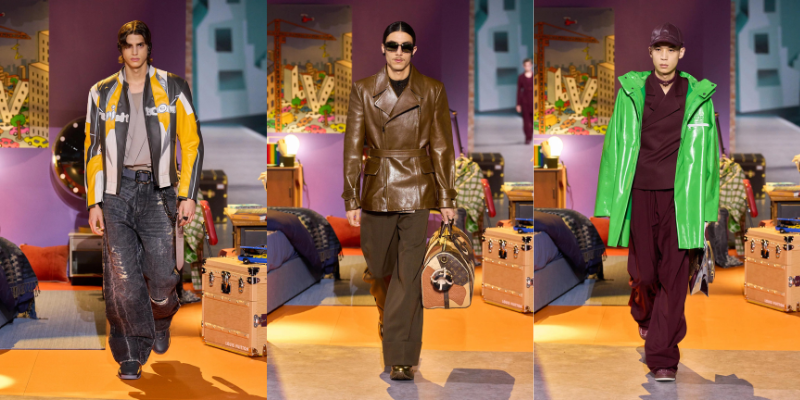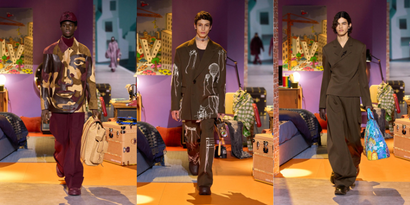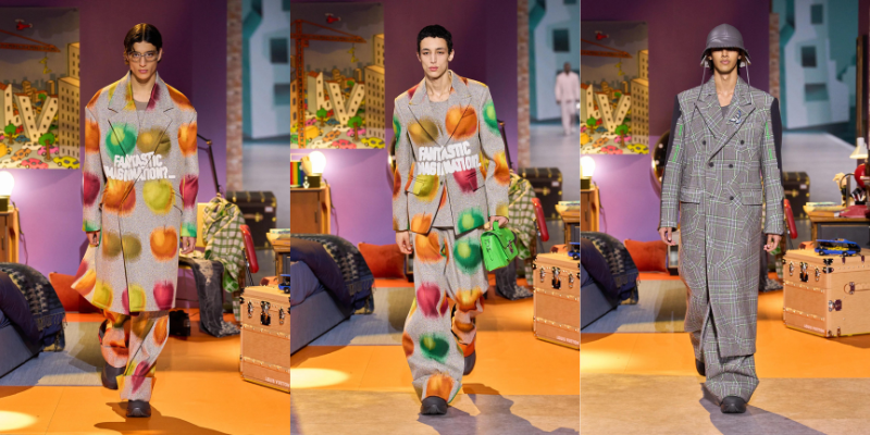 Trong không gian cung điện Louvre, gian nhà đầy màu sắc đã được dựng lên, đó cũng là nơi chứng kiến hành trình trưởng thành của những cậu trai trẻ. Dấu ấn của thế hệ millennial từng bước được khắc họa qua những hình ảnh gợi nhắc về trò chơi trên máy vi tính và chiếc rương Louis Vuitton chứa đầy đồ chơi thời thơ ấu, đây cũng là lúc thời đại kỹ thuật số được mở ra một cách đầy ấn tượng trên sàn runway.