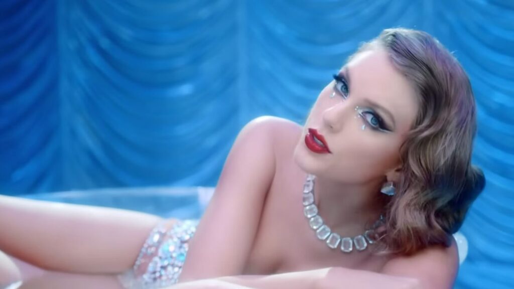 Nhìn tổng thể MV Bejeweled, xa hoa nhất có lẽ phải kể đến makeup look đính đá xa hoa khi nàng “Lọ Lem” lột xác trong bộ bikini lấp lánh với vai trò nhân vật chính trên một sân khấu. Lớp trang điểm này của Taylor quả đúng với câu hát trong bài – “Diamonds in my eyes”. Trước khi xuất hiện trong MV Bejeweled, makeup look này cũng đã được Taylor nhá hàng khi mang tới VMAs.