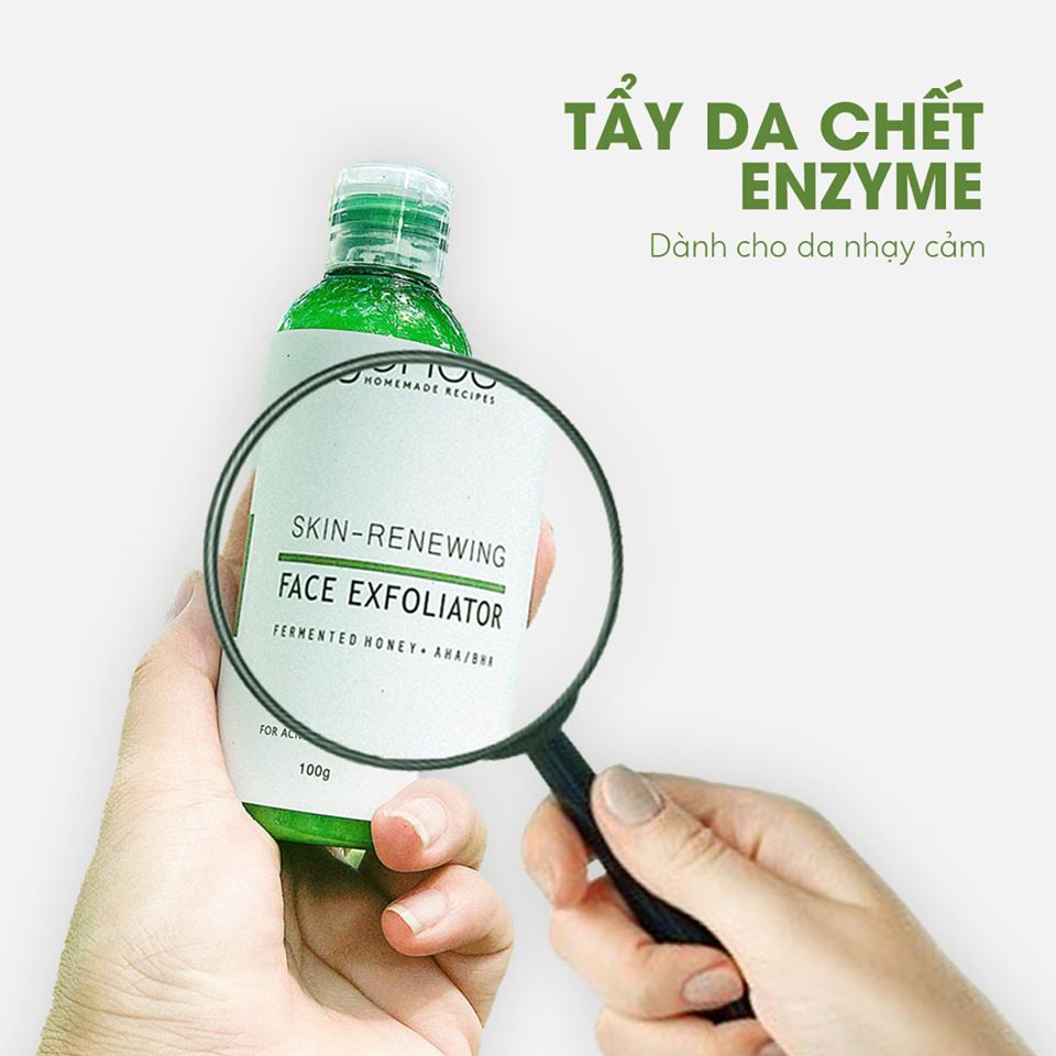 Dành cho bạn nào chưa biết Enzyme là gì. Enzyme có nguồn gốc từ trái cây như đu đủ, bí ngô, dứa, lựa,… và không có có axit hay các hạt mát xa. Điều này cho thấy enzyme sẽ tẩy da chết trên da một cách nhẹ nhàng hơn. Enzyme là một lựa chọn tốt cho những bạn có làn da nhạy cảm hoặc đã từng dùng qua các sản phẩm tẩy da chết từ axit, hạt nhưng không phù hợp.