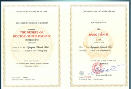 – Tốt nghiệp loại xuất sắc khóa cao học đầu tiên chuyên ngành Phẫu Thuật Tạo Hình Thẩm Mỹ tại trường Đại Học Y Hà Nội, hoàn thành Nghiên Cứu Sinh đạt học vị Tiến sĩ tại Học Viện Quân Y Hà Nội