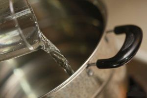 Bước 2: Đặt một nồi nước lên bếp và đun sôi, có thể thêm vào trà xanh, trà bạc hà, trà hoa cúc hoặc các loại thảo dược khác để giúp nuôi dưỡng da mặt và tạo hương thơm. Thêm dầu cây trà vào nồi nước để giúp điều trị mụn trứng cá.